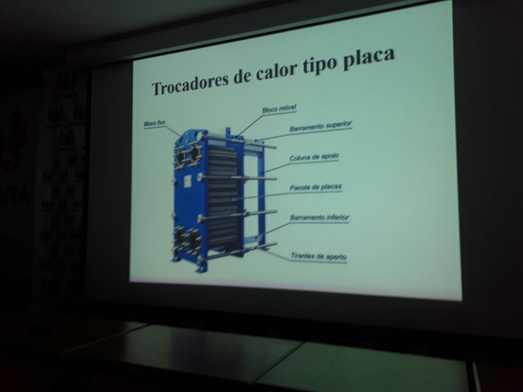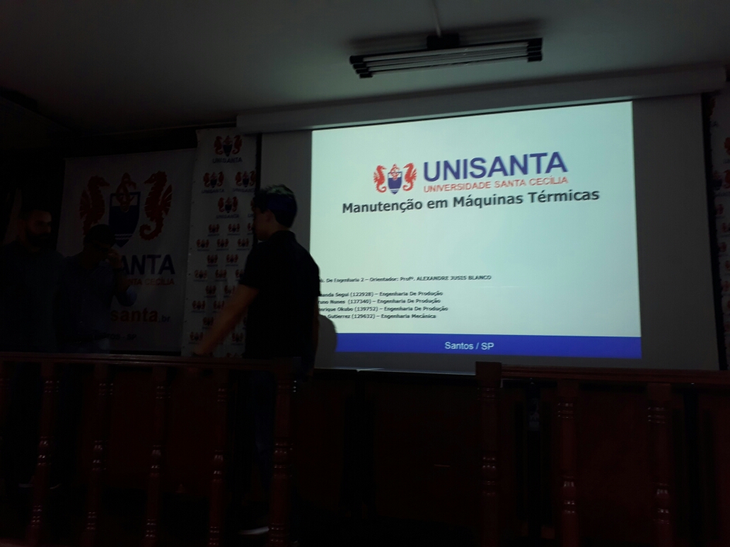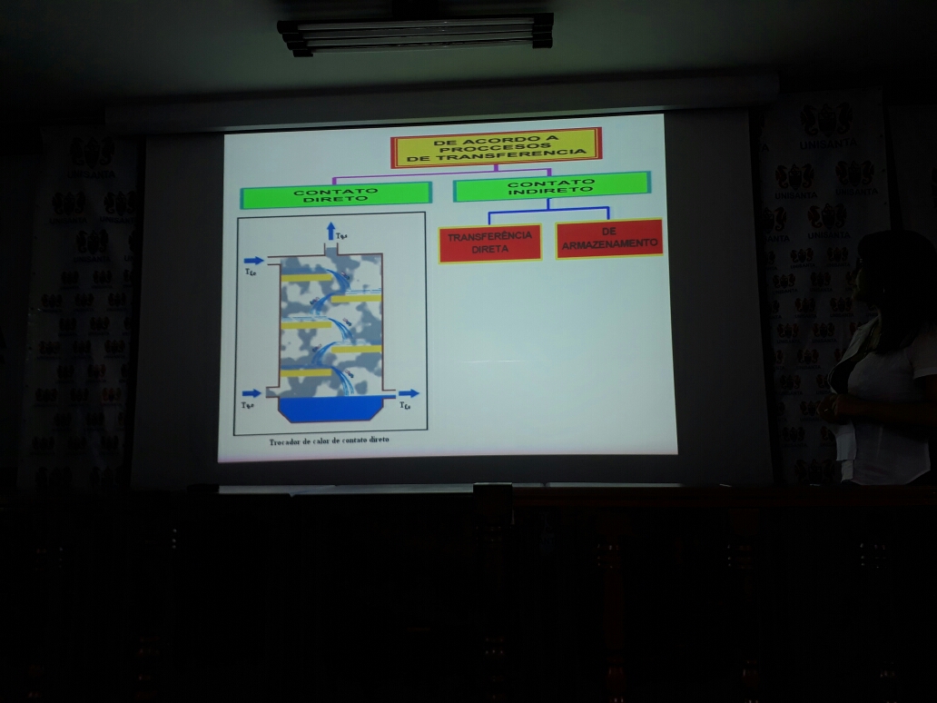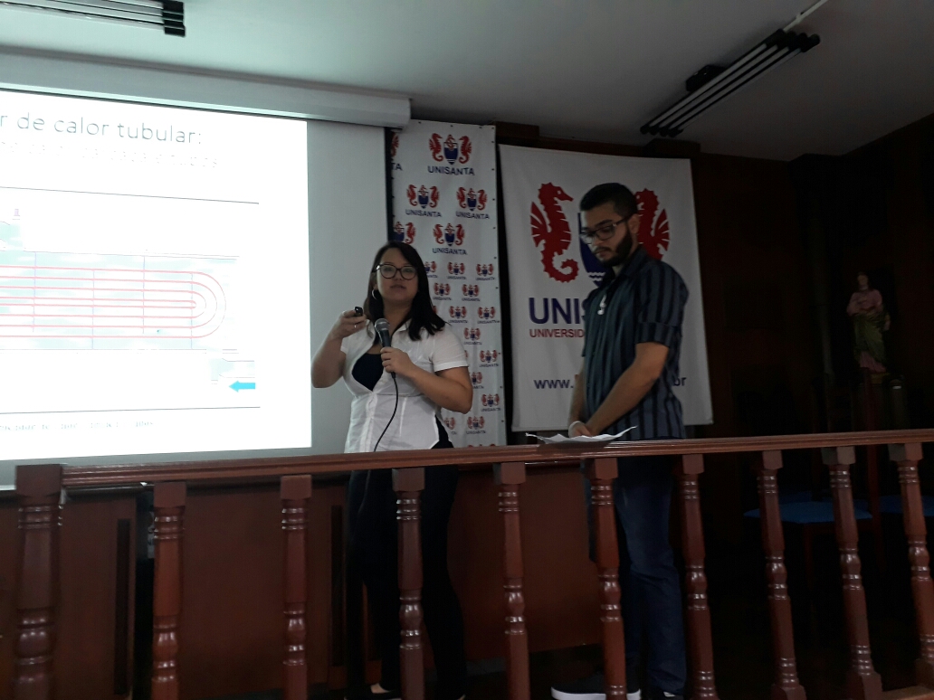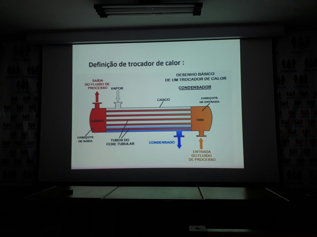 Os alunos de engenharia Maina,Matheus,Noemi e Pamela ,durante o seminário de máquinas térmicas realizado no consistório da universidade Santa Cecília, explanaram sobre trocadores de calor, abordando os tópicos mais relevantes deste equipamento, como por exemplo: definição do equipamento; causas de acidentes, onde foi destacado as causa mais recorrentes; aplicações do equipamento nas indústrias; tipos de caldeira como flamotubulares; aquatubulares; Elétricas (resistência, eletrodo, e jato de água); normas (NR – 13) ressaltadando a importância da identificação dos trocadores, e análise de ocorrências e de manutenções de segurança.
