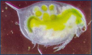 | Organismo conhecido popularmente como pulga d`água, é um microcrustáceo facilmente encontrado em lagos e represas de águas continentais. Medem cerca de 0.5 a 5.0 mm de comprimento e possuem uma carapaça transparente bivalve. A alimentação é basicamente de algas, bactérias, protozoários e detritos orgânicos, os quais são capturados por processo de filtração (comum nos microcrustáceos). A natação é obtida pela movimentação das longas antenas, que funcionam como remos.